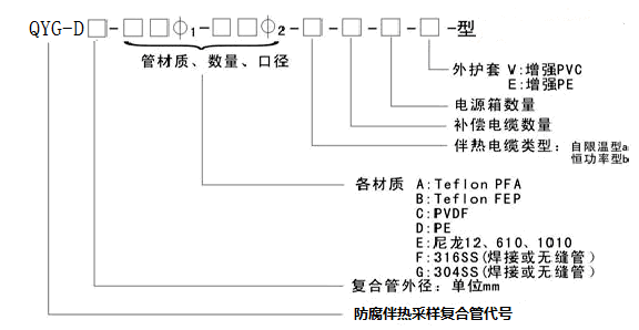 耐腐伴熱采樣復(fù)合管是環(huán)保監(jiān)測系統(tǒng)中的重要部件,它是由一組耐腐高性能樹脂導(dǎo)管輔以恒功率伴熱帶以及補(bǔ)償線纜組成內(nèi)芯,外加保溫層,最后敷以阻燃聚乙烯(PE)保護(hù)外套復(fù)合而成。恒功率伴熱帶必須采用溫控儀控制,可以保證采樣管內(nèi)維持一定的溫度,從而盡可能保證采集樣品與初始值保持一致,最終確保環(huán)保監(jiān)測系統(tǒng)連續(xù)、正確地采集樣氣。根據(jù)采集樣氣體的成份、溫度等實(shí)際情況,耐腐伴熱采樣復(fù)合管中采樣導(dǎo)管可以選用不同的材質(zhì),如PFA(四氟乙烯與全氟烷基醚共聚物)、FEP(四氟乙烯和六氟丙烯共聚物)、PVDF(聚偏二氟乙烯)、PE(阻燃聚乙烯)、尼龍610等等,伴熱帶可以選用中、高溫度伴熱帶,,另外還可以根據(jù)用戶要求添加補(bǔ)償導(dǎo)線、電源線等 。產(chǎn)品使用壽命在5年以上。